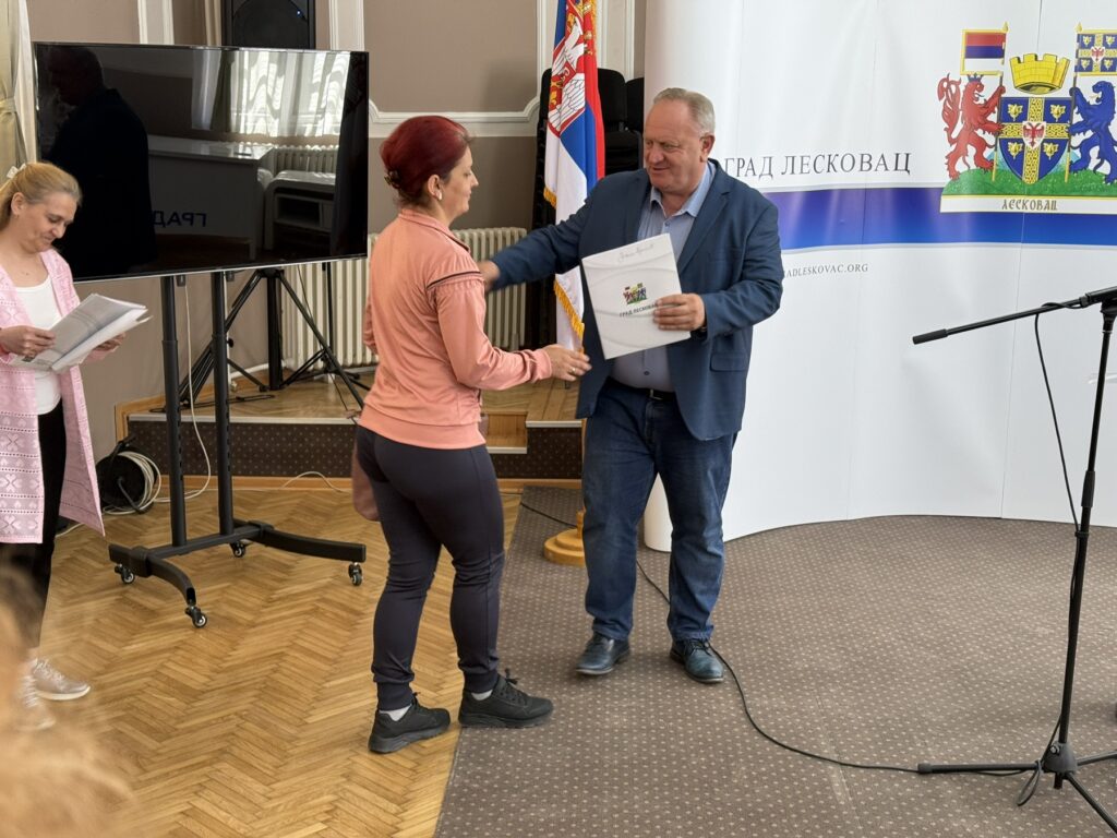 Градоначелник Лесковца др сци. мед. Горан Цветановић уручио је данас решења о остваривању права на статус родитељ-неговатељ за првих седам подносиоца захтева у складу са тренутно планираним средствима у буџету града, која износе 5 милиона динара.