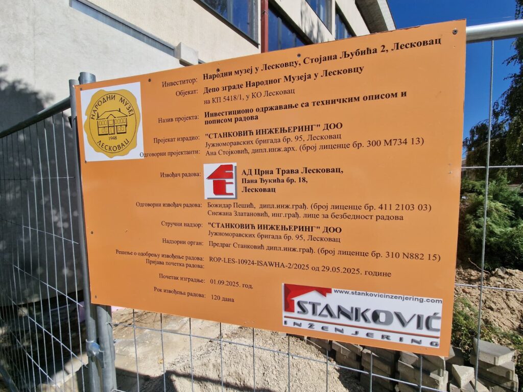 Градоначелник Лесковца др сци. мед. Горан Цветановић, обишао је данас радове на дренажи темеља зграде Народног музеја, који ће се одвијати кроз три фазе. У првој фази чија је вредност 12 милиона динара, биће урађена дренажа и хидроизолација темеља музеја који чине зидове депоа, у другој унутрашње уређење депоа, док ће трећа фаза обухватати опремање овог простора савременим апартима за контролисање и мерење температуре и влаге у њима. Ове радове у потпуности финансира град Лесковац.