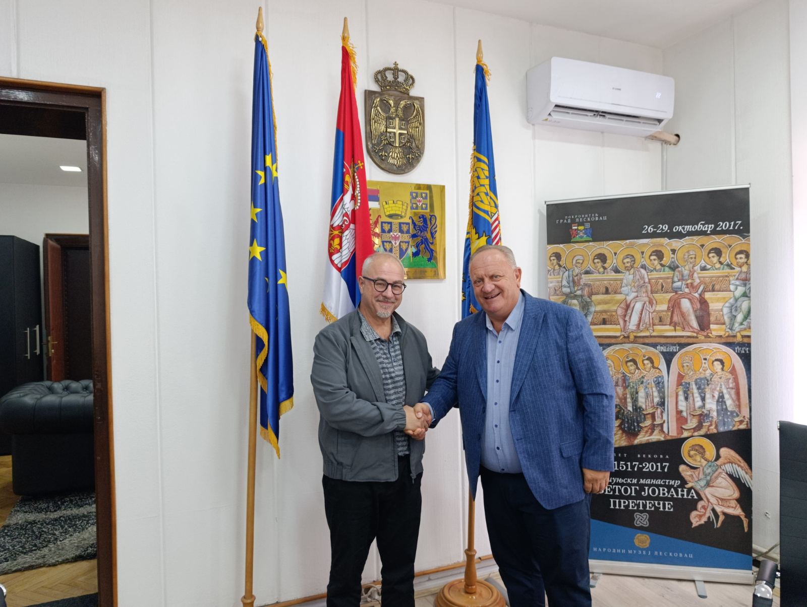 Градоначелник Лесковца др сци. мед. Горан Цветановић састао се у свом кабинету са овогодишњим добитником Октобарске награде Града Лесковца – Похвале за 2025. проф. др Срђаном Мијалковићем, који је изразио дубоку захвалност, јер се нашао међу добитницима највећих признања града.