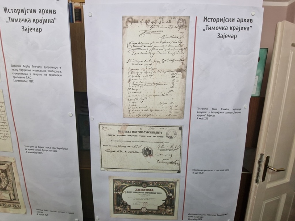 Изложена документа сведоче о друштвено-економским и политичким приликама, животу и раду наших суграђана. Овом изложбом су обухваћене тапије, разна судска решења, жалбе, изјаве, пословна преписке, меморандуми, документа о просвети, култури и здравству, документа различитог садржаја и периода настанка али која као таква имају историјску и културну вредност.“